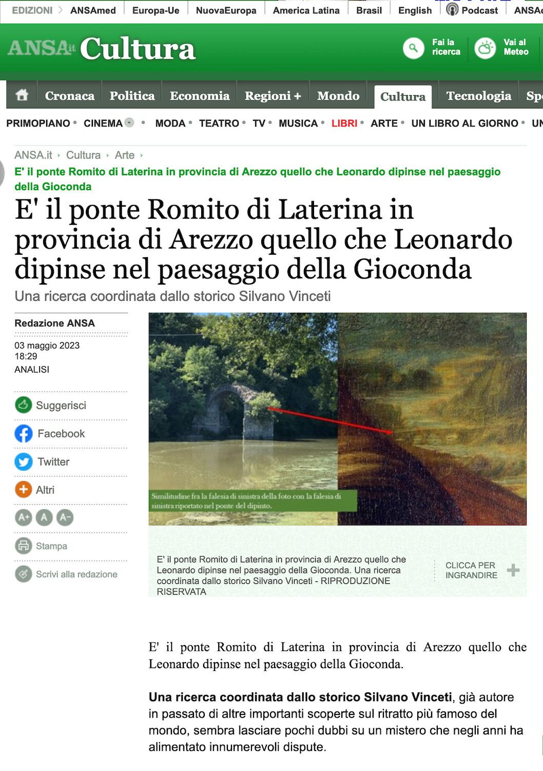 ANSA - E' il ponte Romito di Laterina in provincia di Arezzo quello che Leonardo dipinse nel paesaggio della Gioconda
