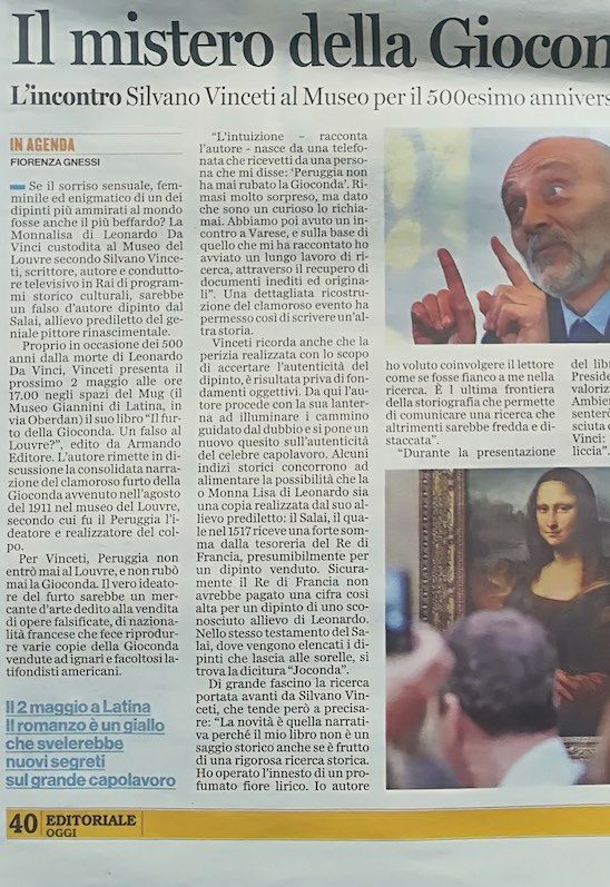 30 aprile 2019 - Latina Editoriale Oggi – Al museo Giannini di Latina Silvano Vinceti presenta il suo ultimo libro che propone documenti inediti sul furto al Louvre... (L'articolo - pdf)